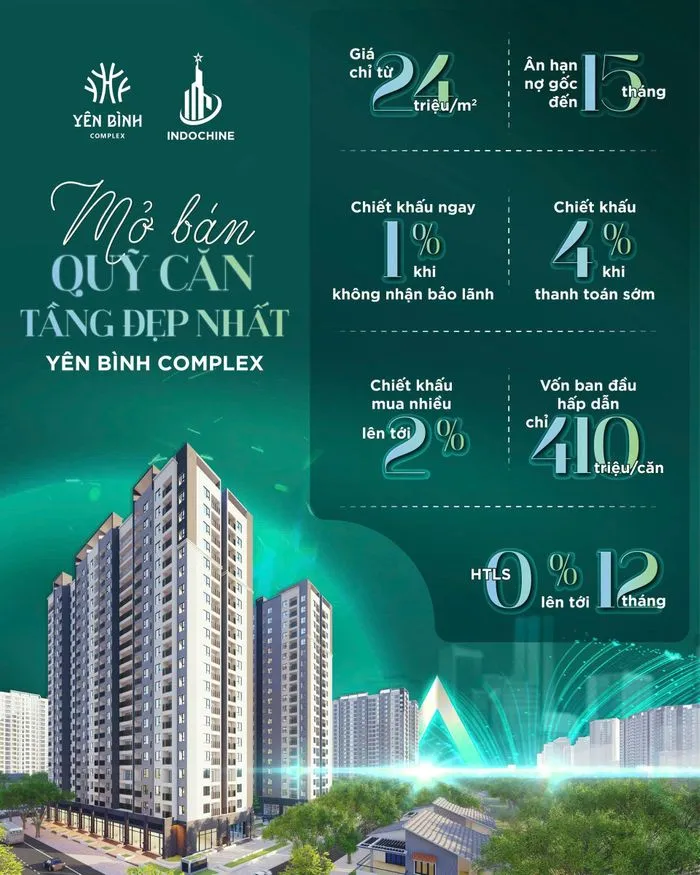 Dự án Yên Bình Complex Thái Nguyên là một phân khu Cao tầng nằm trong tổng thể dự án KĐT Yên Bình. Sở hữu 2 tòa tháp cao 20 tầng nổi và 2 tầng hầm. Các căn hộ thiết kế diện tích đa dạng từ 52-135m2 Phù hợp với mội nhu cầu của khách hàng. Các căn hộ được thiết kế Ban Công thông thoáng.