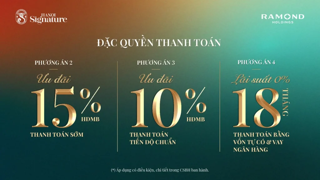 Phương án thanh toán và ưu đãi chủ đầu tư ramond holdings