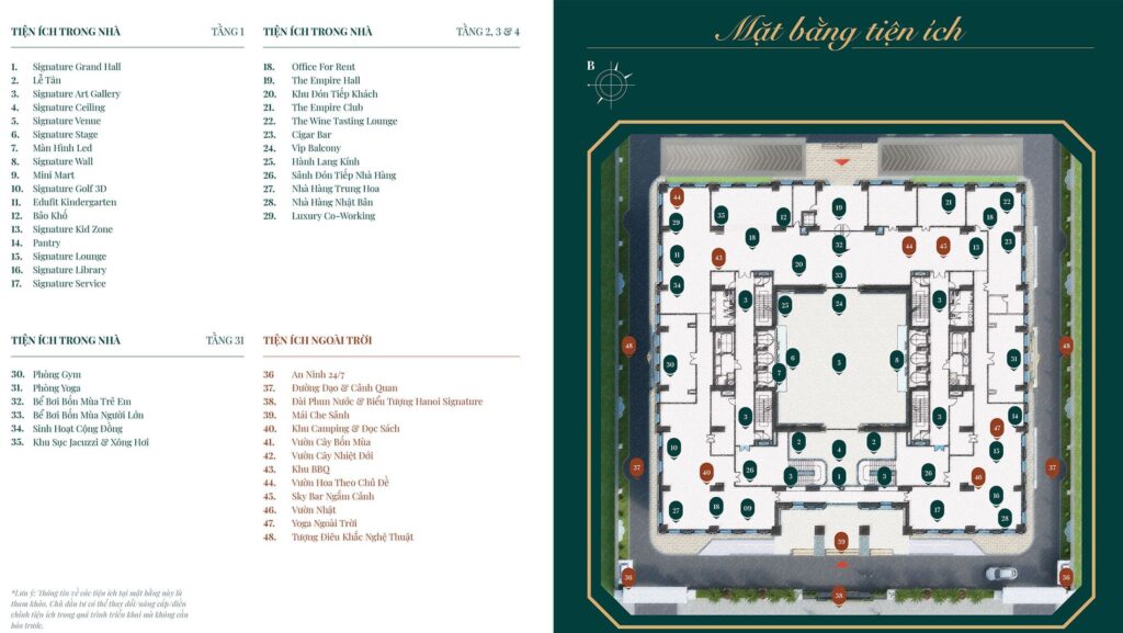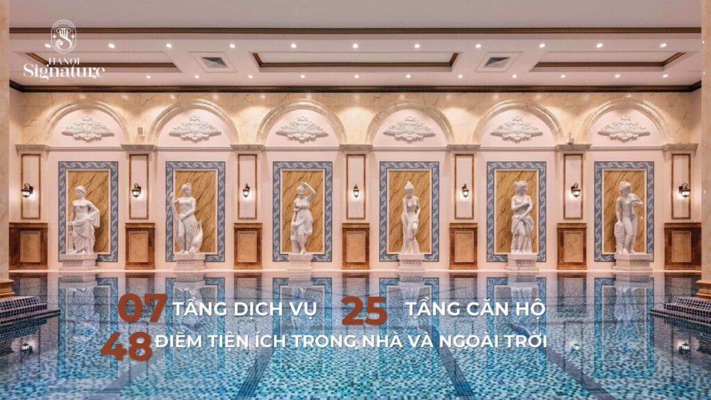 Hiếm một tòa tháp căn hộ hàng hiệu hay hạng sang nào trên thị trường hiện tại có mức đầu tư dành nhiều diện tích cho hạ tầng tiện ích như Hanoi Signature. Tiện ích công trình đạt đến độ hoàn mỹ khi dành tới 7 tầng dịch vụ trong tổng số 25 tầng căn hộ phục vụ nhu cầu thiết yếu đến xa xỉ của các gia chủ Hanoi Signature.