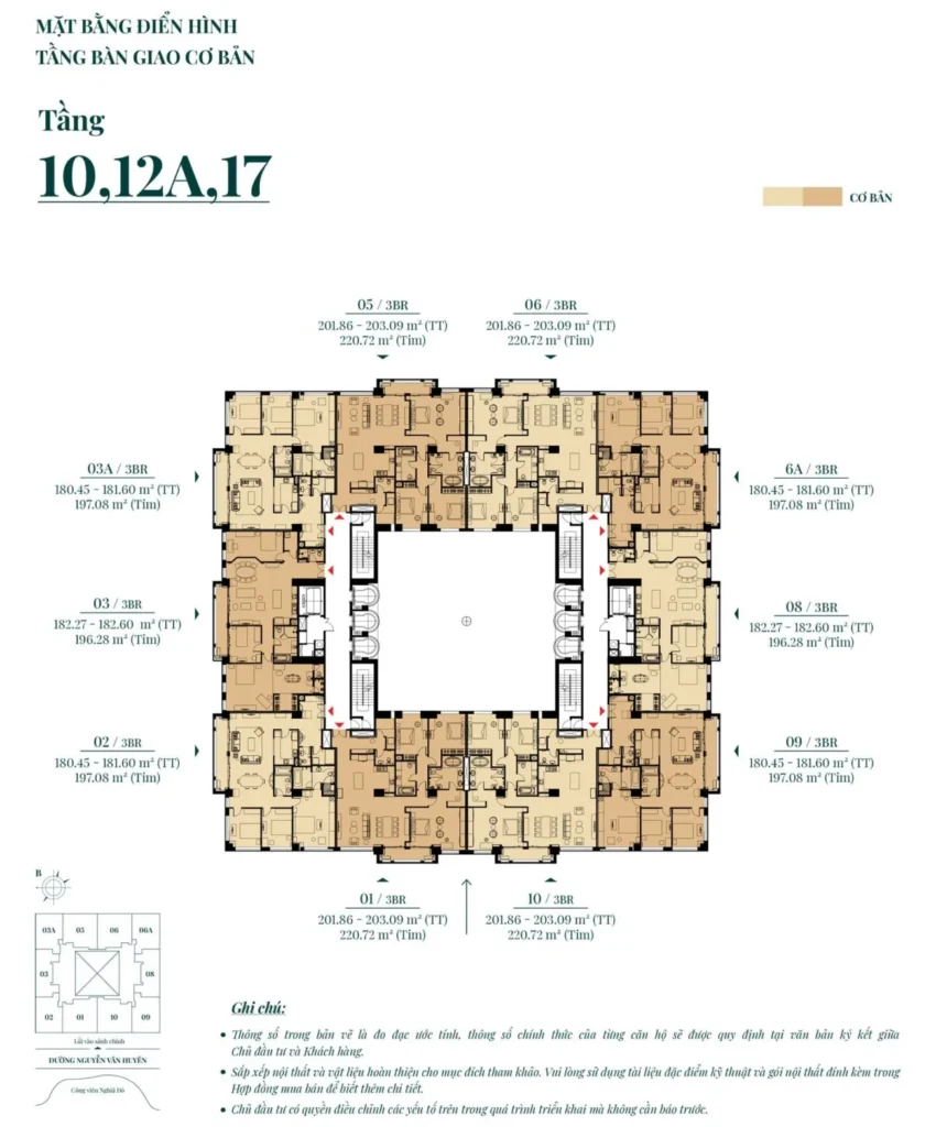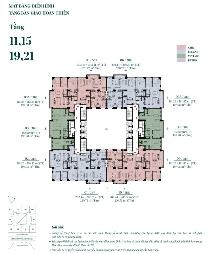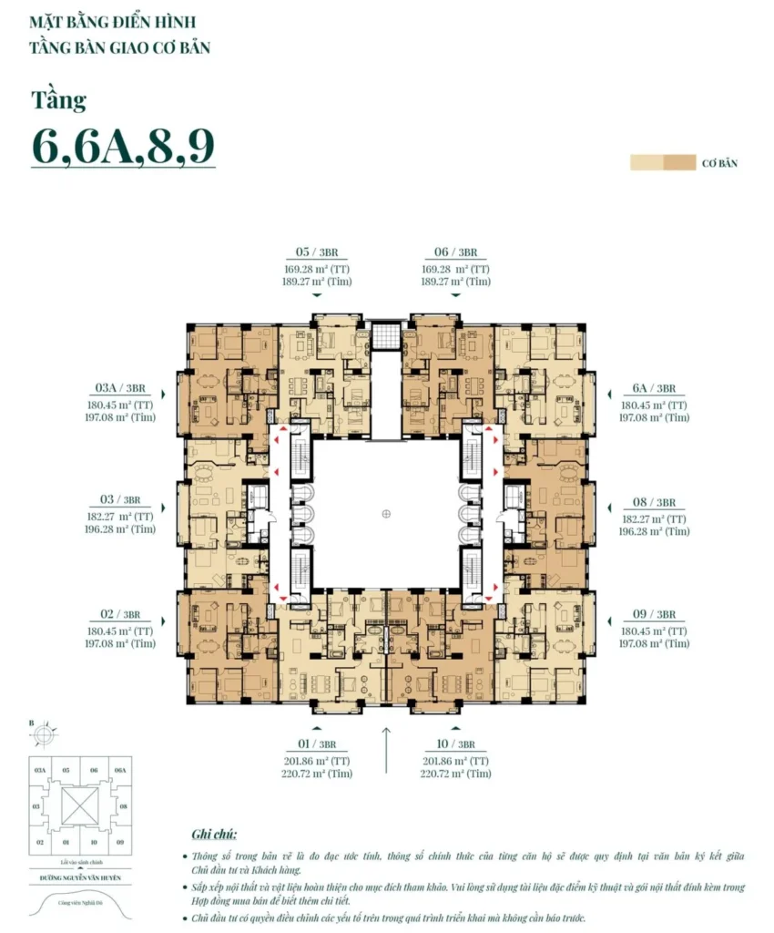| Loại 3PN: | 228 căn, diện tích 166.6M2 – 258.91M2. |