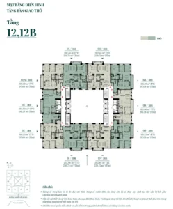| Loại Penthouse: | 2 căn, diện tích 1383.27M2 – 1475.88M2. |